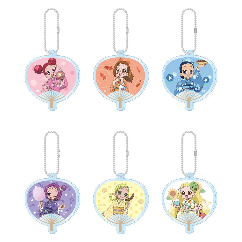 浴衣を着た「春風どれみ」や「藤原はづき」「飛鳥ももこ」たちのアクリルキーホルダー。