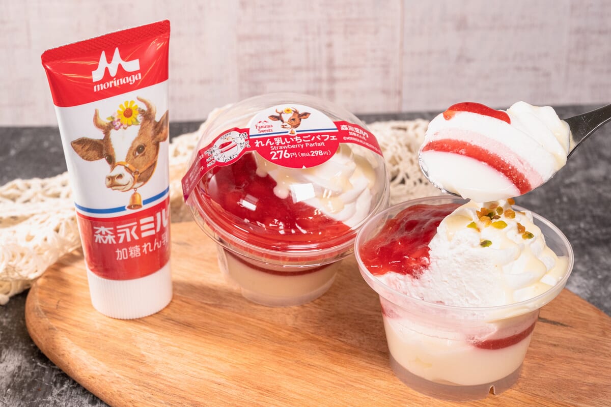 森永乳業の「森永ミルク加糖れん乳」を使った「れん乳いちごパフェ」