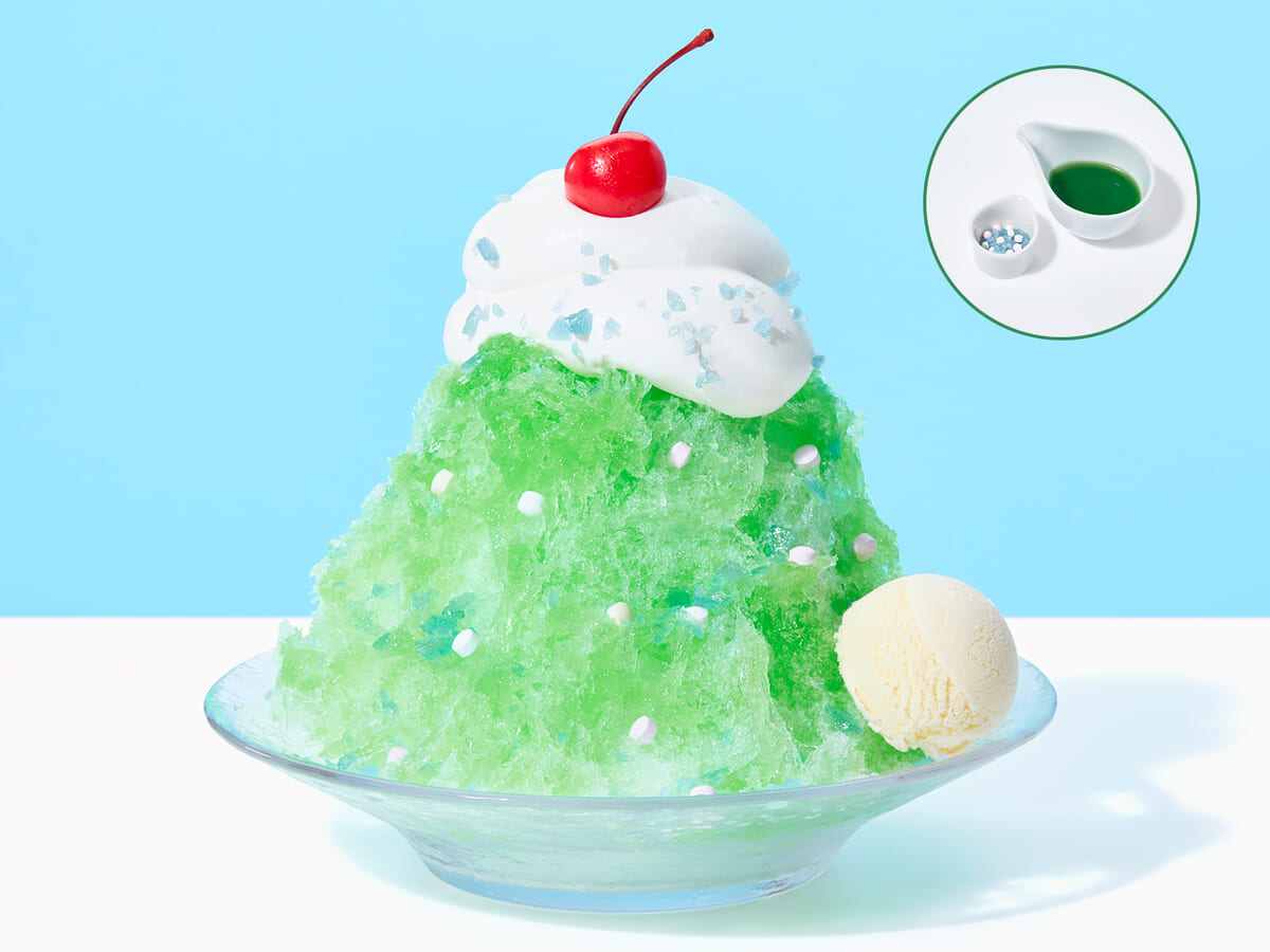 喫茶店にある昔ながらのメロンクリームソーダをイメージしたかき氷。
