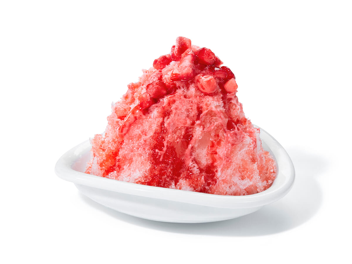 純氷の中には小豆を、背面にはフローズンストロベリーをあしらい、どこから食べてもおいしいかき氷になっています!