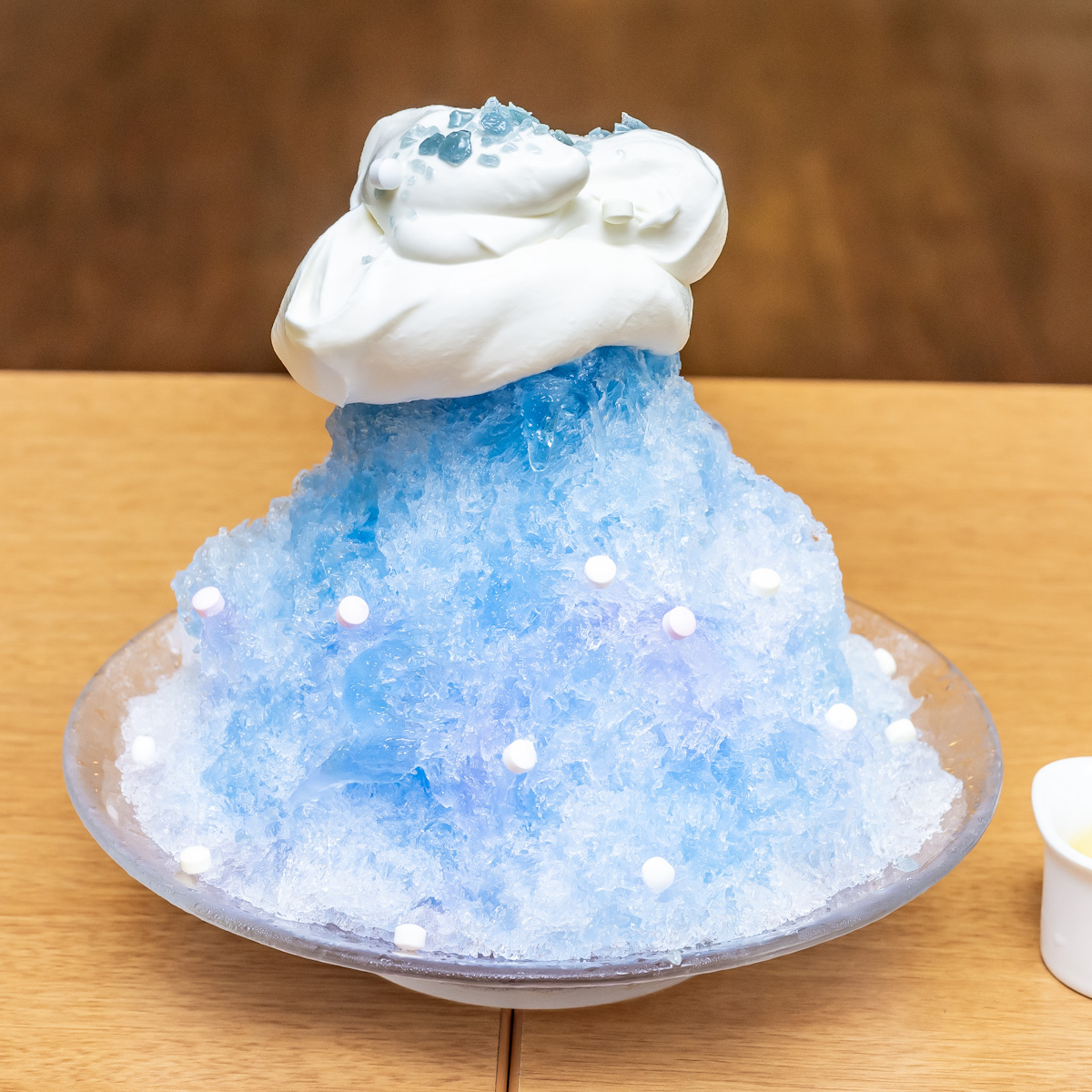 鮮やかなブルーとパッションフルーツフレーバーの爽やかな甘みが夏にぴったりのかき氷。