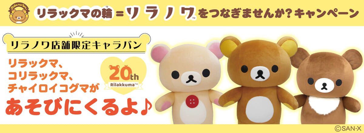 全国のリラノワ認定店舗にて、「リラックマ」20周年記念「リラノワ認定店舗限定キャラバン」第2弾を開催!