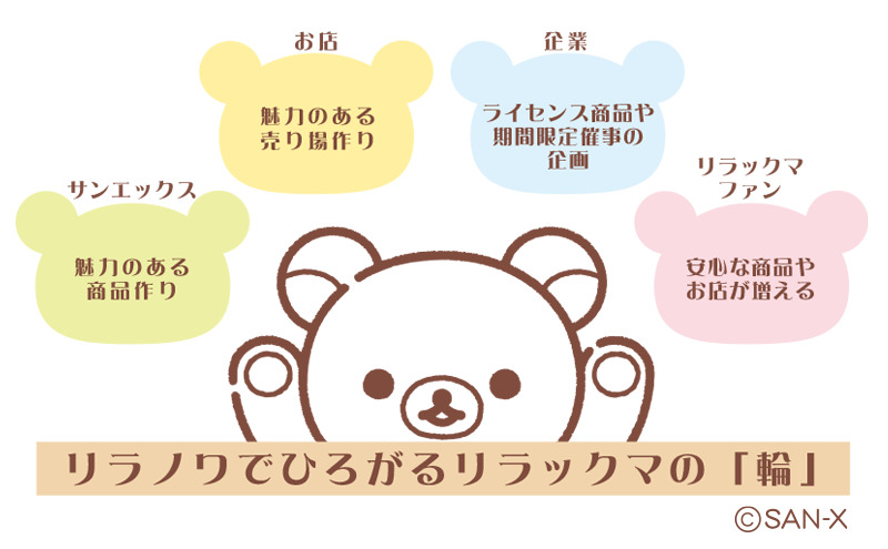 「リラノワ」は、「リラックマ」を通してファンとお店や企業をつなげる「輪」のこと。