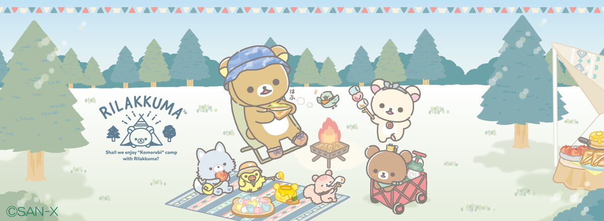 「リラックマ」たちがキャンプを楽しむ、アウトドアシーズンにぴったりのかわいらしいテーマとです。