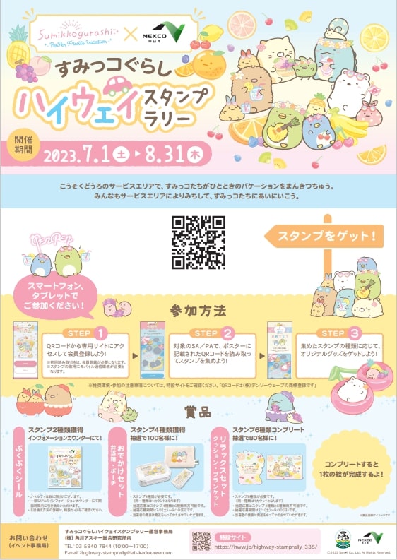 「すみっコぐらし ハイウェイスタンプラリー」は2023年7月1日(土)より、NEXCO東日本が管理するSA・PA 82カ所にて開催です☆