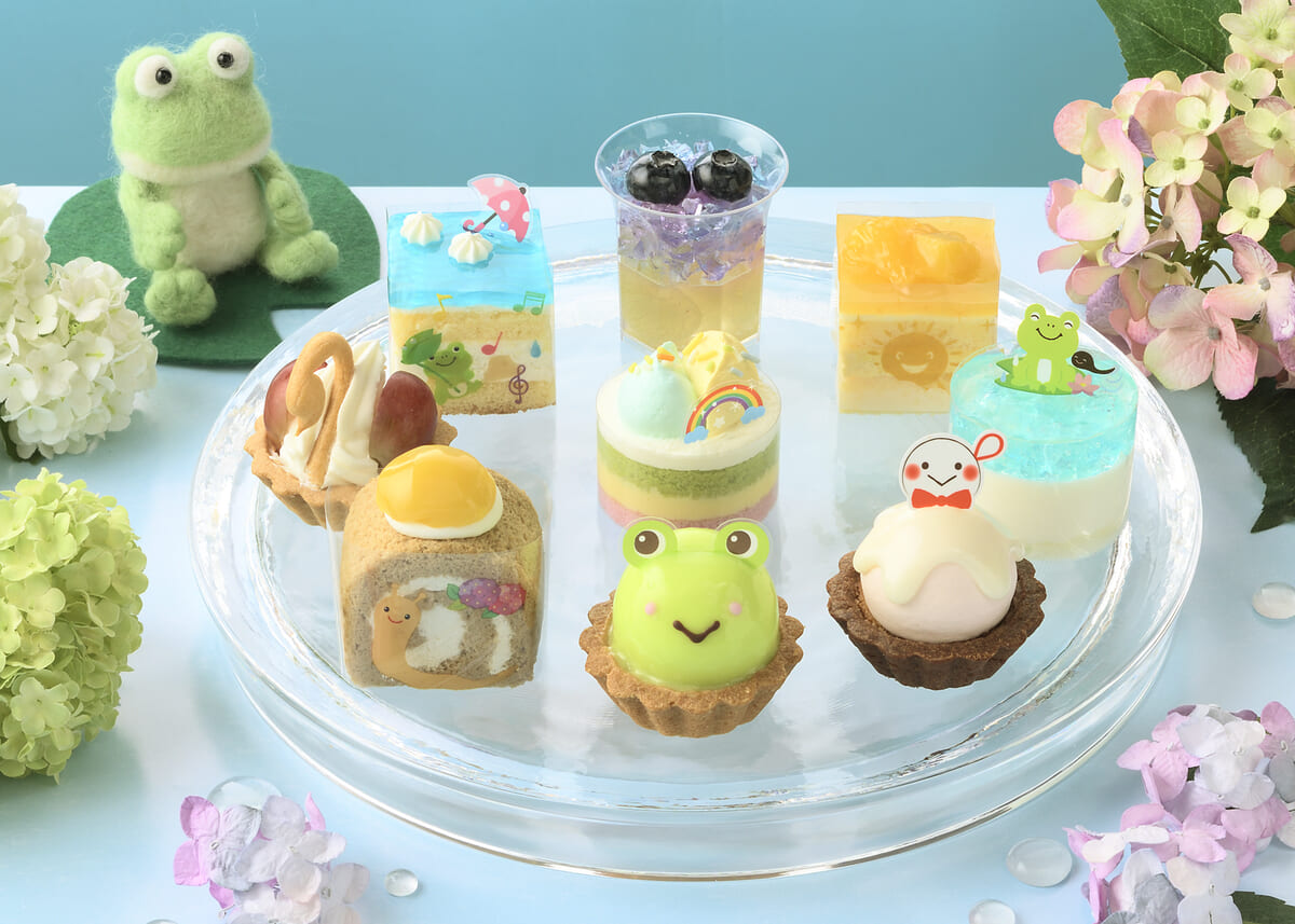 そんな「リスの冬じたく」が好評を博し、2023年6月23日(金)よりその第2弾としてプチケーキアソート「カエルの夏空さんぽ(9個入)」が登場!