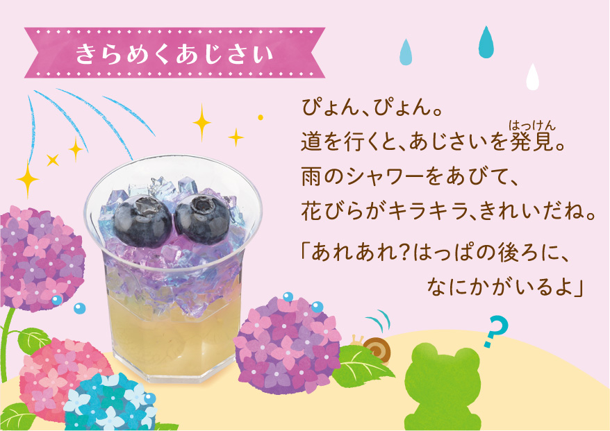 ・きらめくあじさい:レモン風味&ぶどう風味のクラッシュゼリーとぶどう果肉入りゼリー