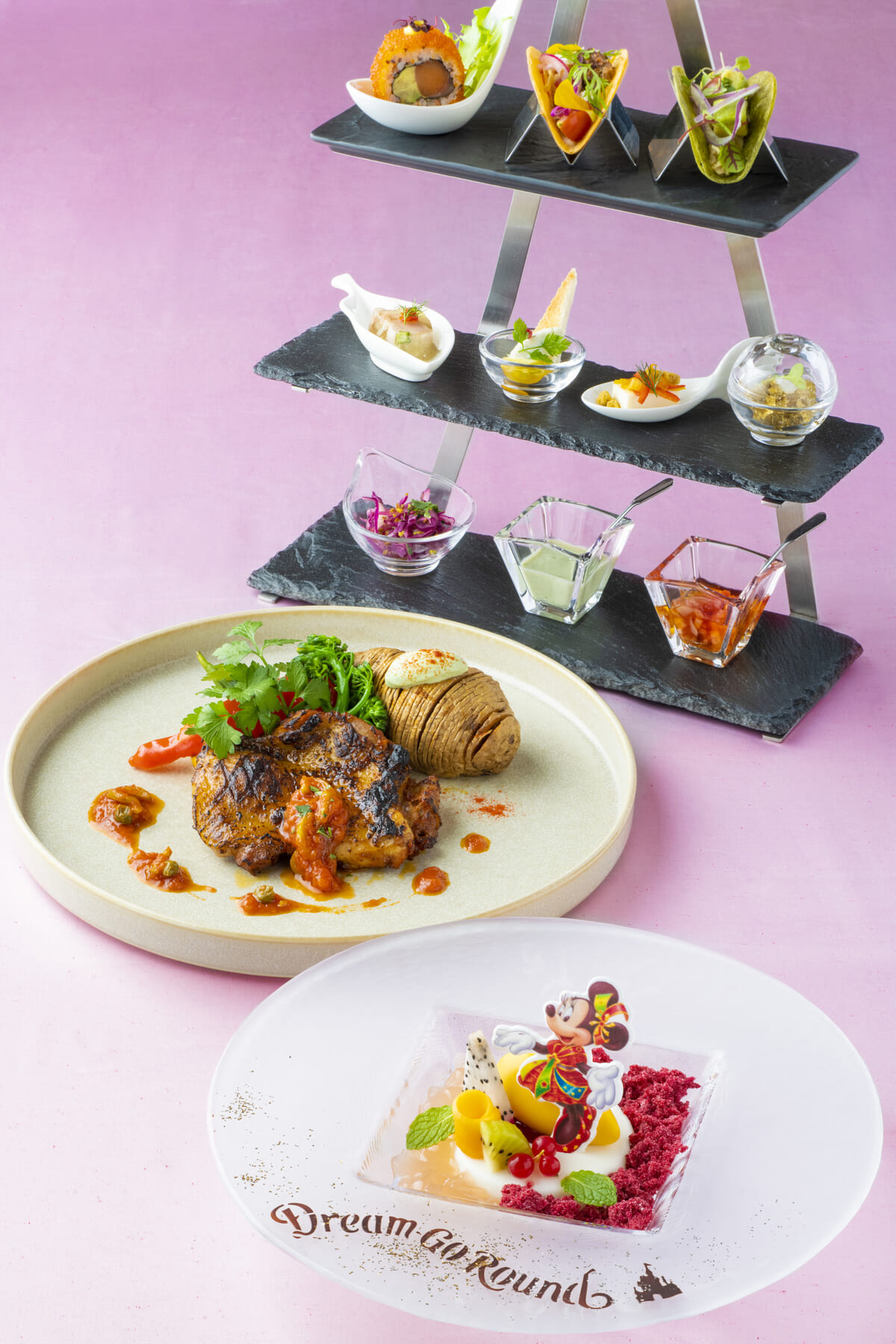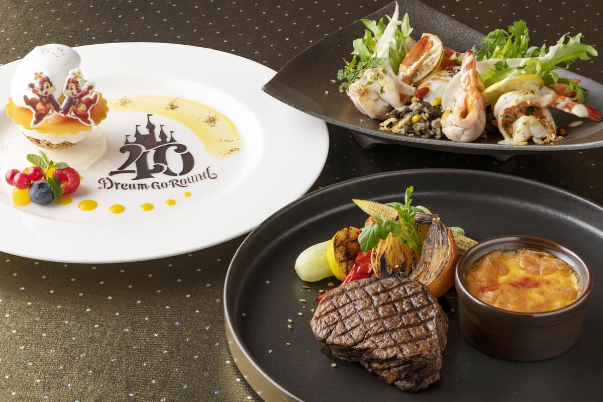 ディズニーアンバサダーホテル内レストラン「エンパイア・グリル」では、東京ディズニーリゾート40周年“ドリームゴーラウンド”エンパイア・グリルディナーを提供。
