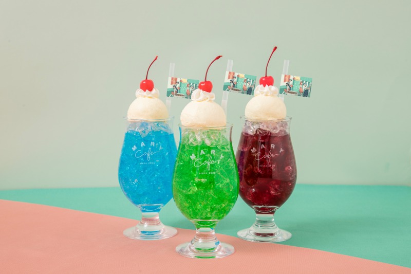 3種類のソーダフロートや作中で登場したドリンクを再現しています!