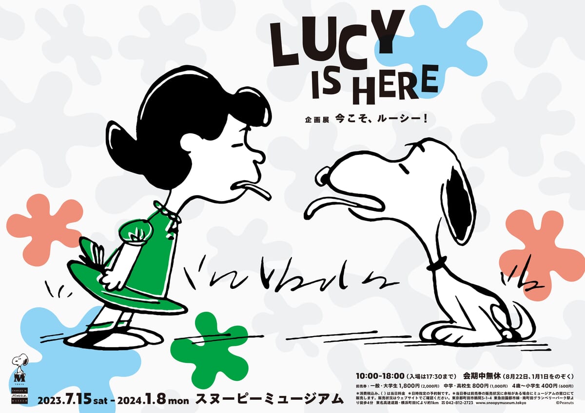 企画展 「今こそ、ルーシー!」LUCY IS HEREは、「スヌーピーミュージアム」にて、2023年7月15日(土)から2024年1月8日(月)まで開催です。