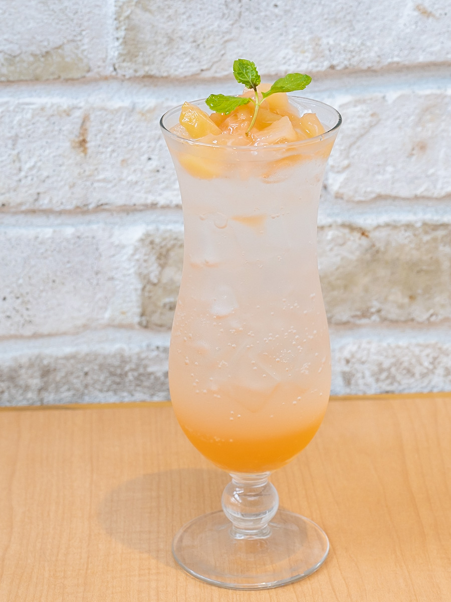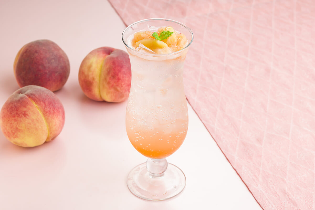 旬の桃をのせた、夏にぴったりなスカッシュ。