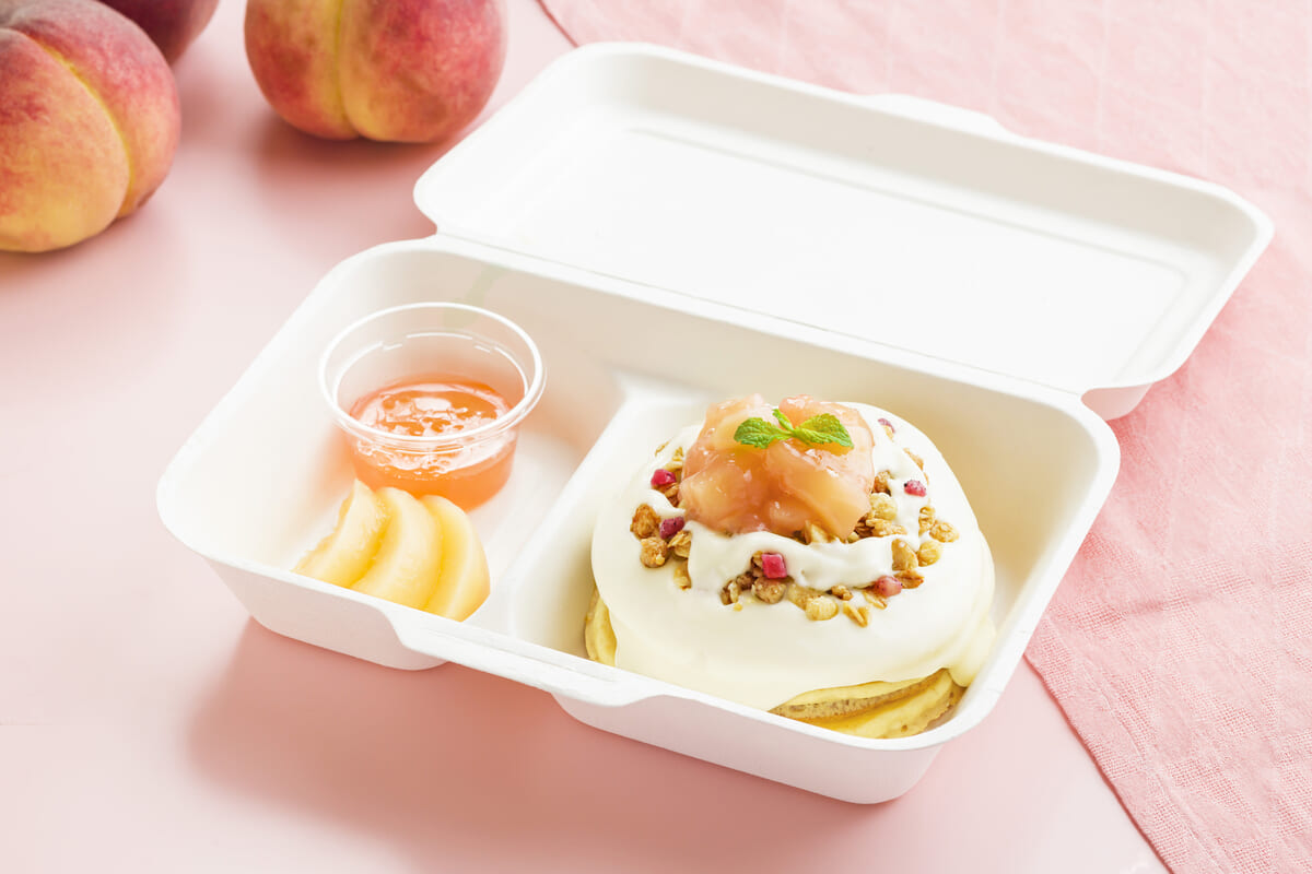 2023年7月1日(土)より、さっぱりとしたチーズクリームに白桃をのせた「白桃のパンケーキ」が提供されています。