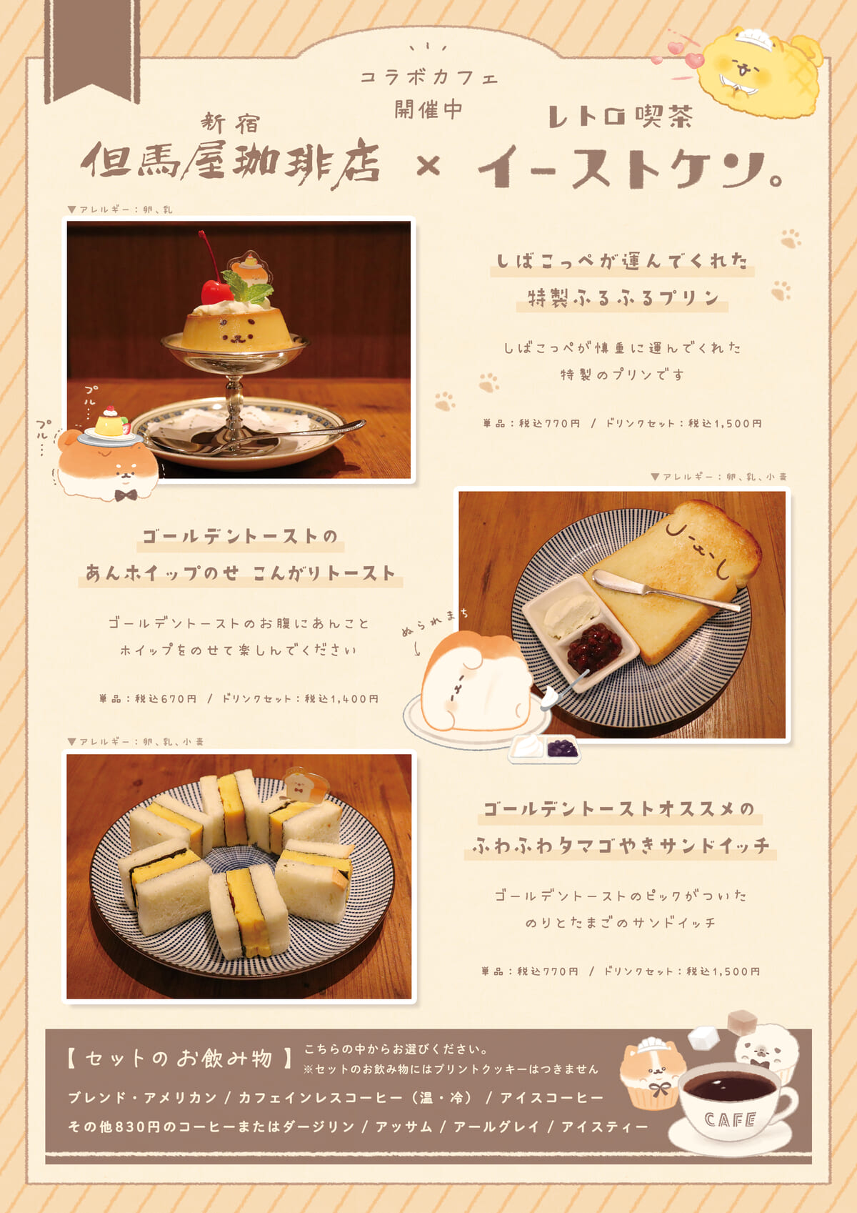 そんな「いーすとけん。」のメニューや限定新作グッズが楽しめるコラボカフェが但馬屋珈琲店 コピス吉祥寺店に期間限定オープン。