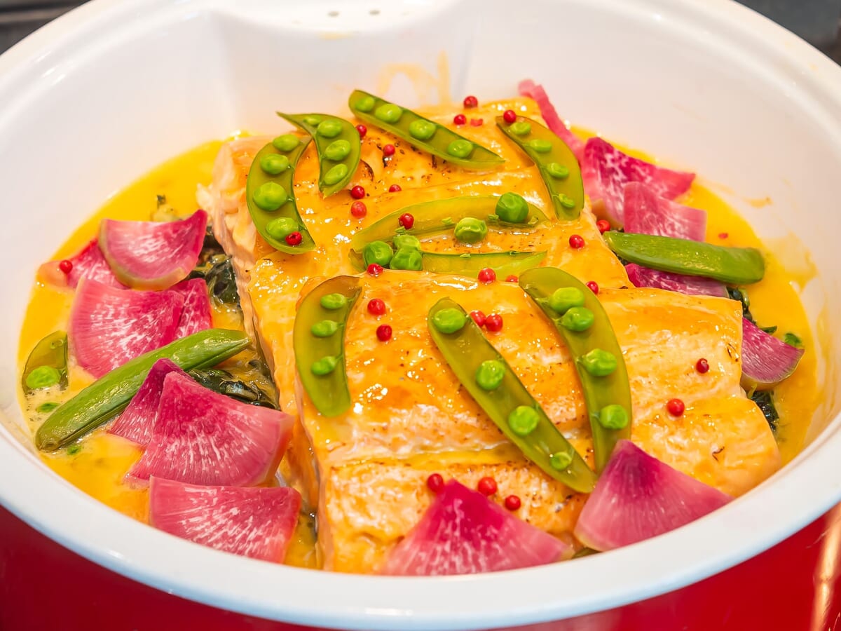 ローストサーモンリリコイバターソース