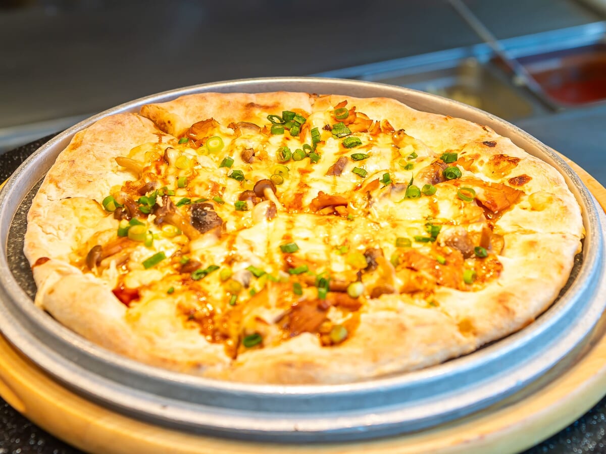 フリフリチキンとキノコのピッツァ