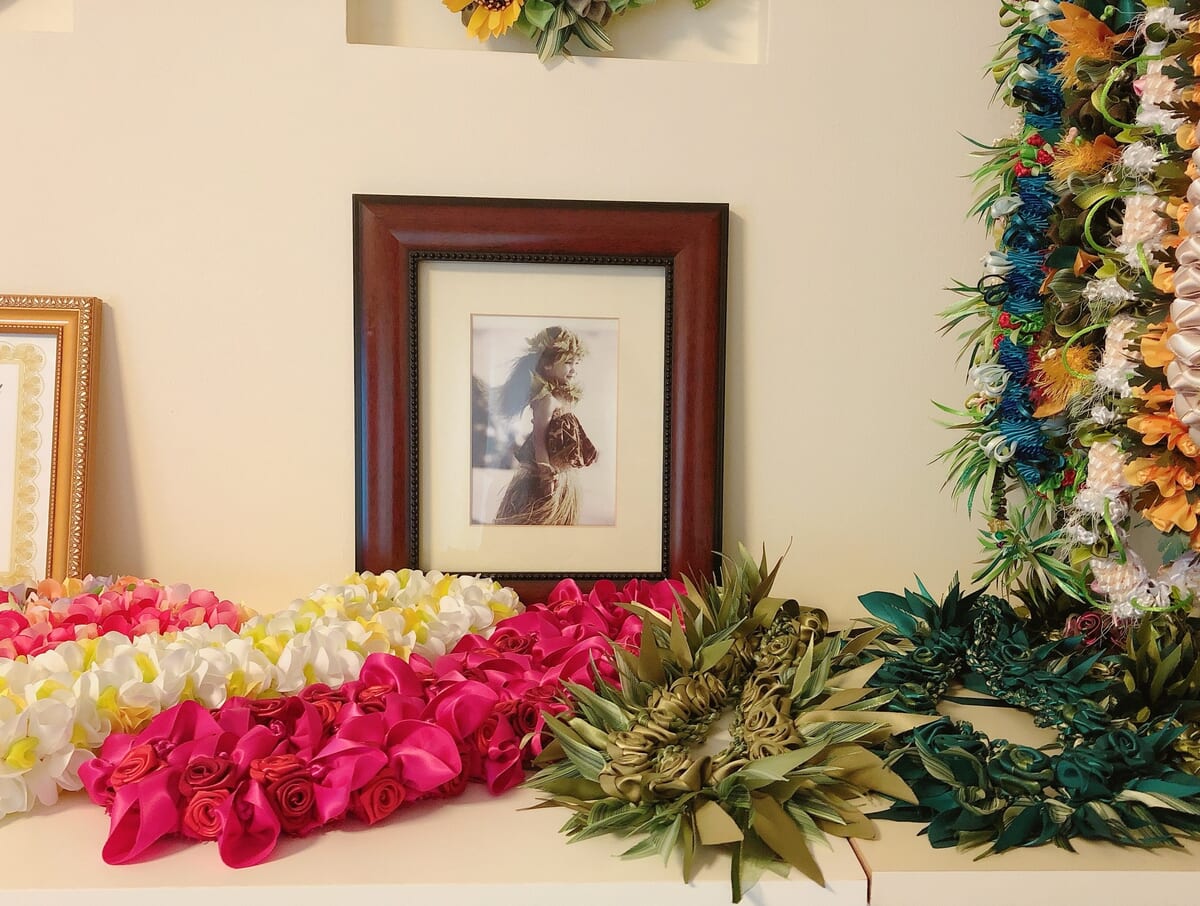 ハワイで神の像とされる木製彫刻“ティキ”や、色鮮やかなリボンレイ、
