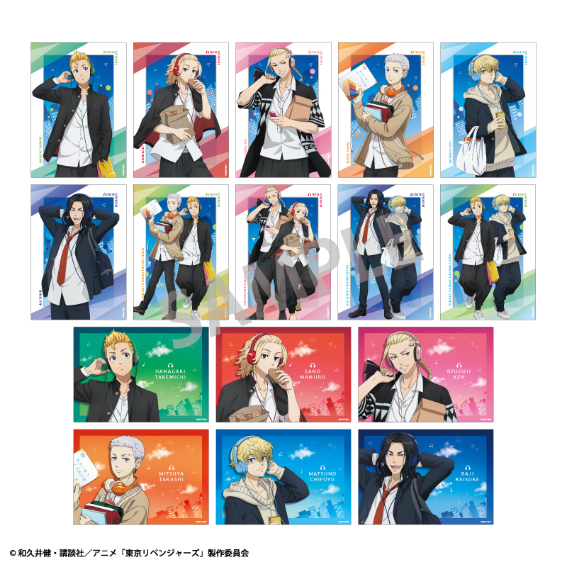 ”東京卍會”のメンバーたちが音楽を楽しむ姿を描いたグッズが多数ラインナップされています。