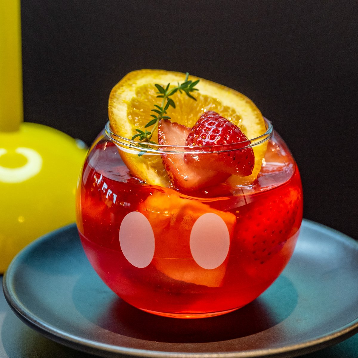 「ミッキーマウス」をモチーフにしたグラスがかわいいフルーツ&ゼリー。