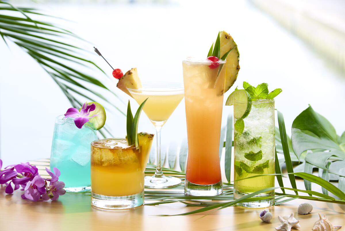 ブルーハワイ、マイタイ、マンゴーモヒートなど見た目にも美しく、ハワイ気分を満喫できるカクテルです。
