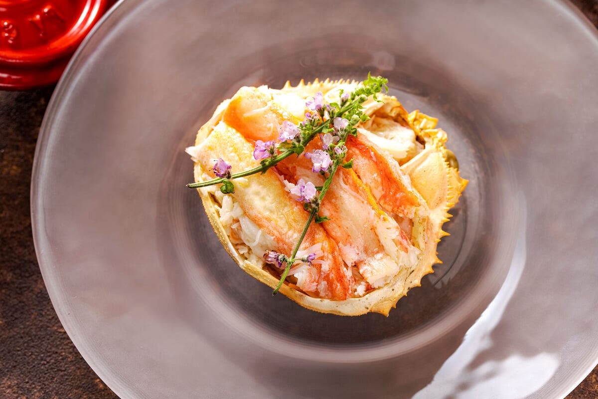 豪華に身を盛り付けた「ズワイガニのサラダ」を用意。