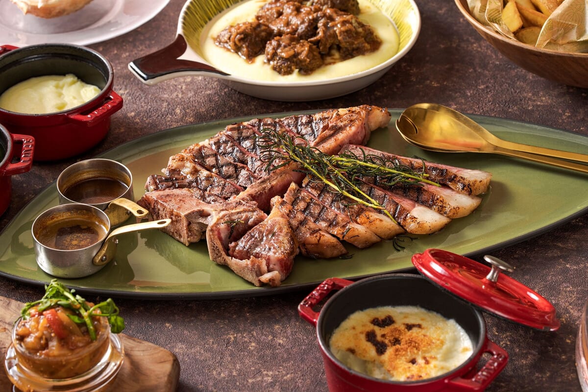 みんなでシェアして楽しめる「常陸牛のT-ボーンステーキ」は、ボリュームたっぷり。