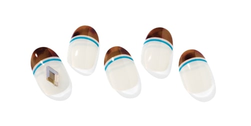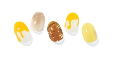 あたたかく柔らかなイエロー、ファンシーなパープル、ゴージャスなブラウンにブルーグリーンのラインが入った3種のデザインは、夏の指先を爽やかに演出してくれます。