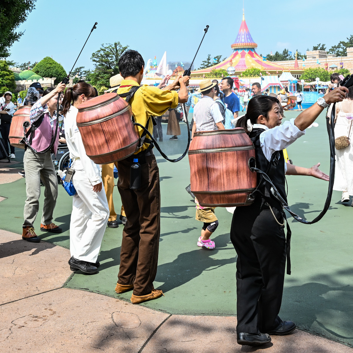2023年7月4日(火)から9月6日(水)の期間中、東京ディズニーランド、東京ディズニーシーの両パークでは、暑い夏にゲストを元気にしようと、水の入った樽を背中に背負ったキャストが登場、涼みたいゲストにクールミストをかけて周ります☆