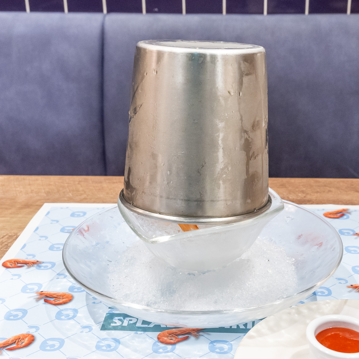 氷を敷き詰めた器に、逆さになったバケツの状態で提供。