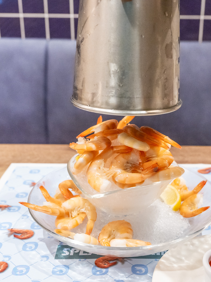36尾のカクテルシュリンプを盛りつけた「スプラッシュ・シュリンプ」