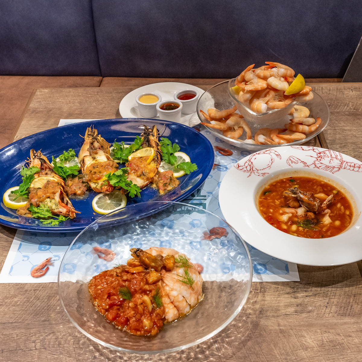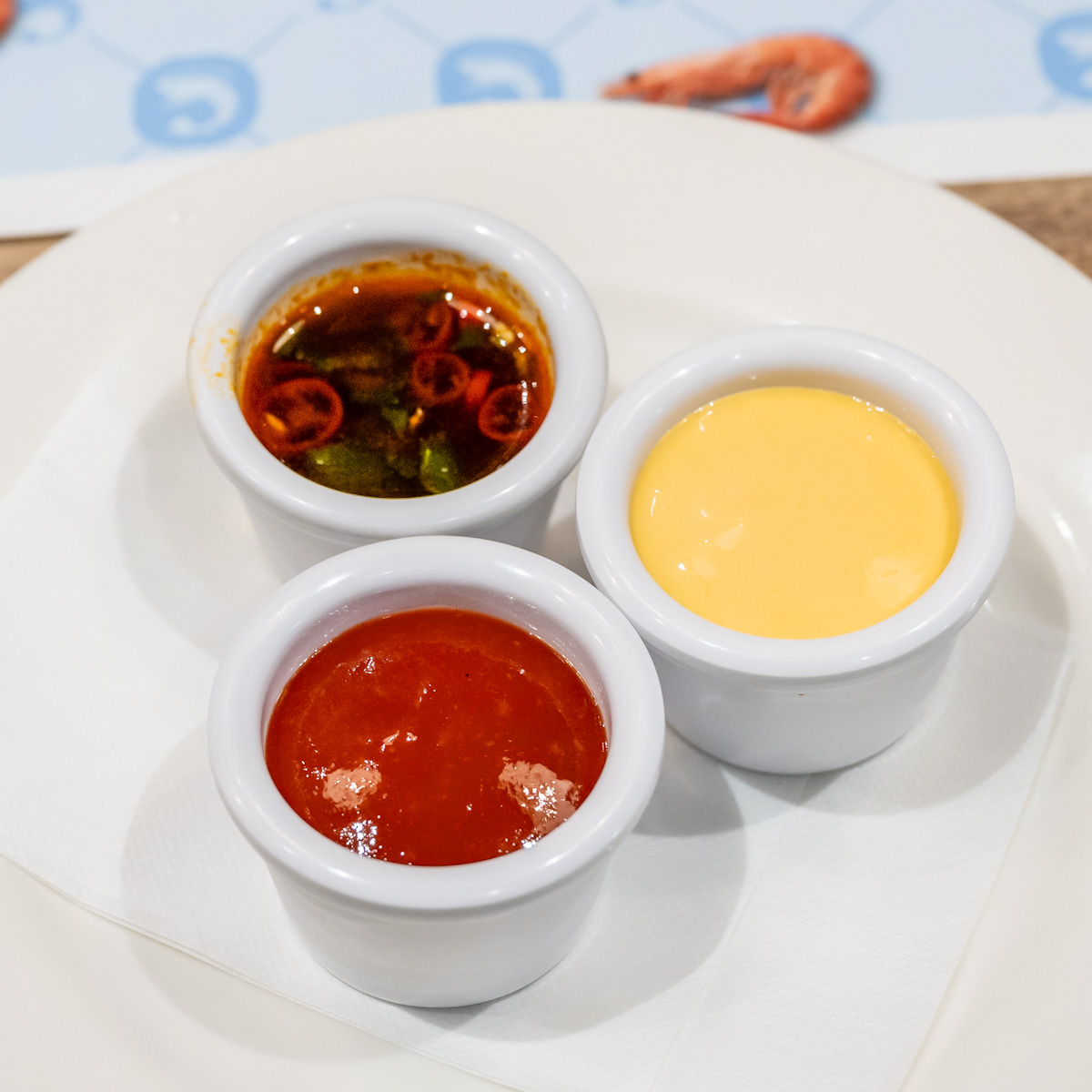 「カクテルソース」「スパイシーライムソイソース」「ロブスターマヨソース」の3種のソースで味変しながらいただけます。