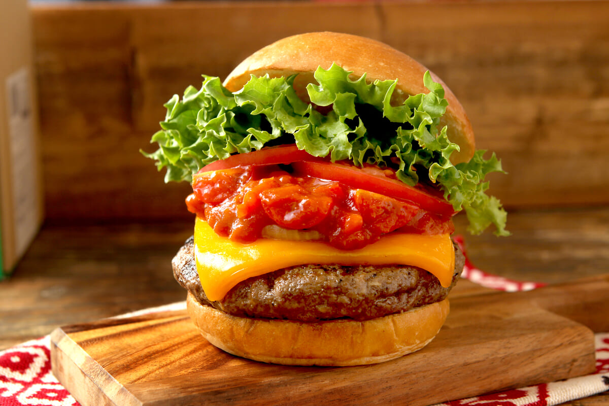 スパイスとフレッシュなトマトの味わいを楽しめる、爽やかな辛さの旨辛グルメバーガー。