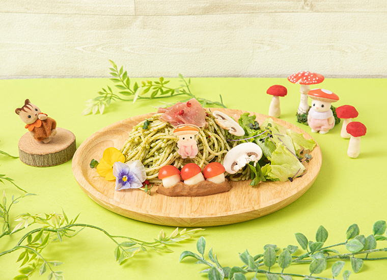 カフェメニューとして、ひみつの森のツリーハウスをイメージしたカレー、宝箱のパングラタン、森に見立てたジェノベーゼパスタなどのフードメニューをラインナップ。
