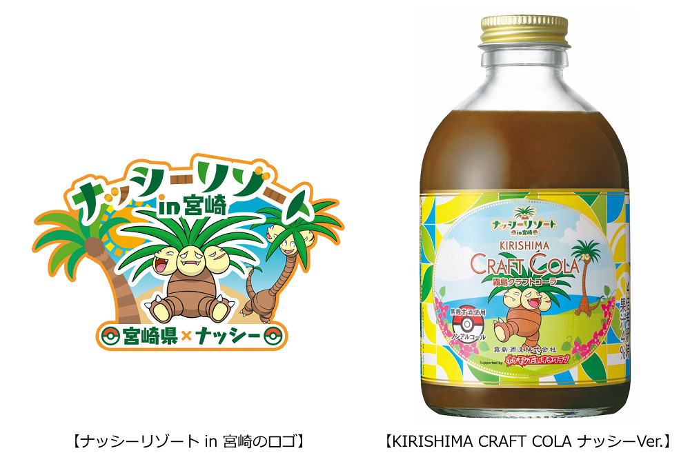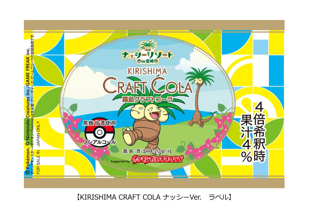 宮崎県と株式会社ポケモンとの取り組み「ナッシーリゾート in 宮崎」に賛同した霧島酒造から、コラボレーション飲料「KIRISHIMA CRAFT COLA ナッシーVer.」が登場。