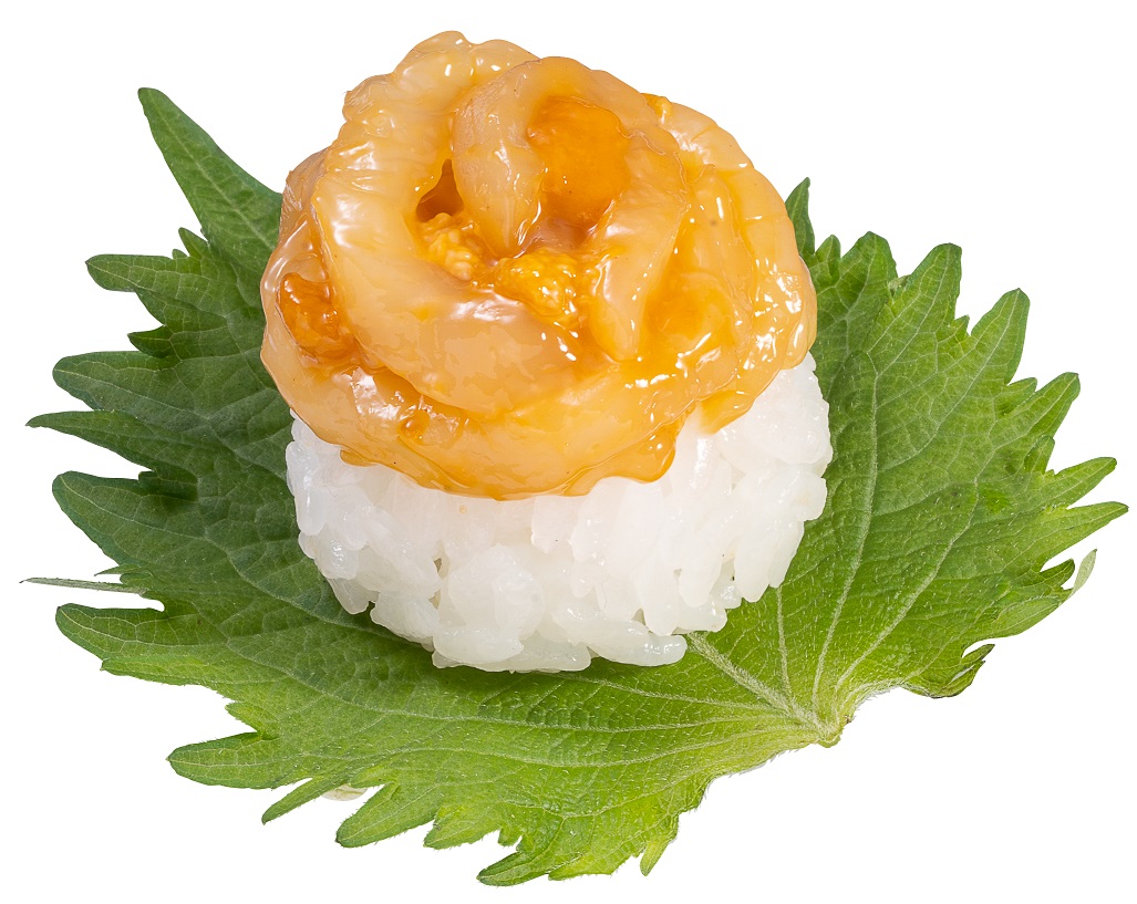 真いかの食感と甘みに、うにの濃厚な旨みが相まった美味しさが楽しめる「うにいか大葉包み」