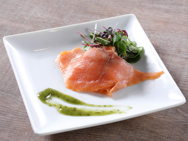 程よく脂がのったサーモンとイタリア発祥の伝統的なソースのハーモニーが楽しめる「スモークサーモン ジェノバソース」と、