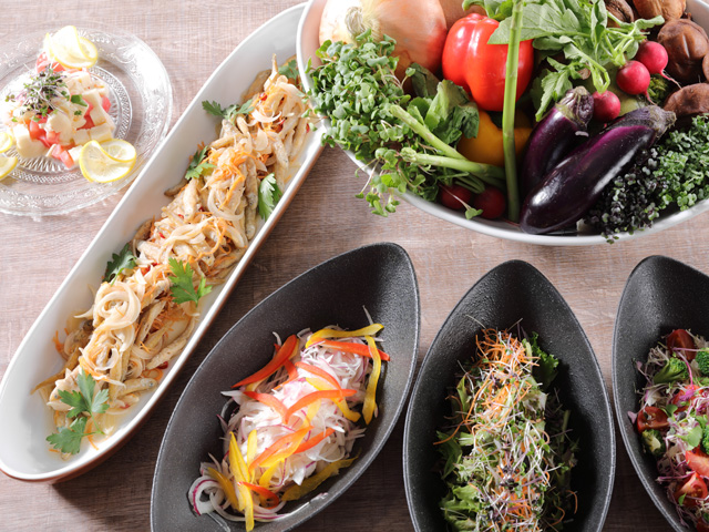 葉物野菜を中心としたサラダから、食べはじめると体にいいと言われている取り組み【サラダファースト】をおすすめしており、食事の中で楽しく野菜を味わえるメニューをラインナップ。