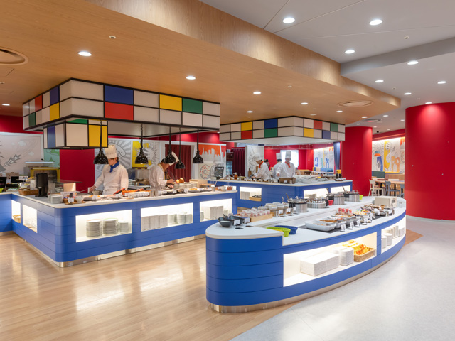 館内全面リニューアル後パワーアップしたレストラン「イーポック」のポップでカラフルなお料理とスイーツが堪能できます。