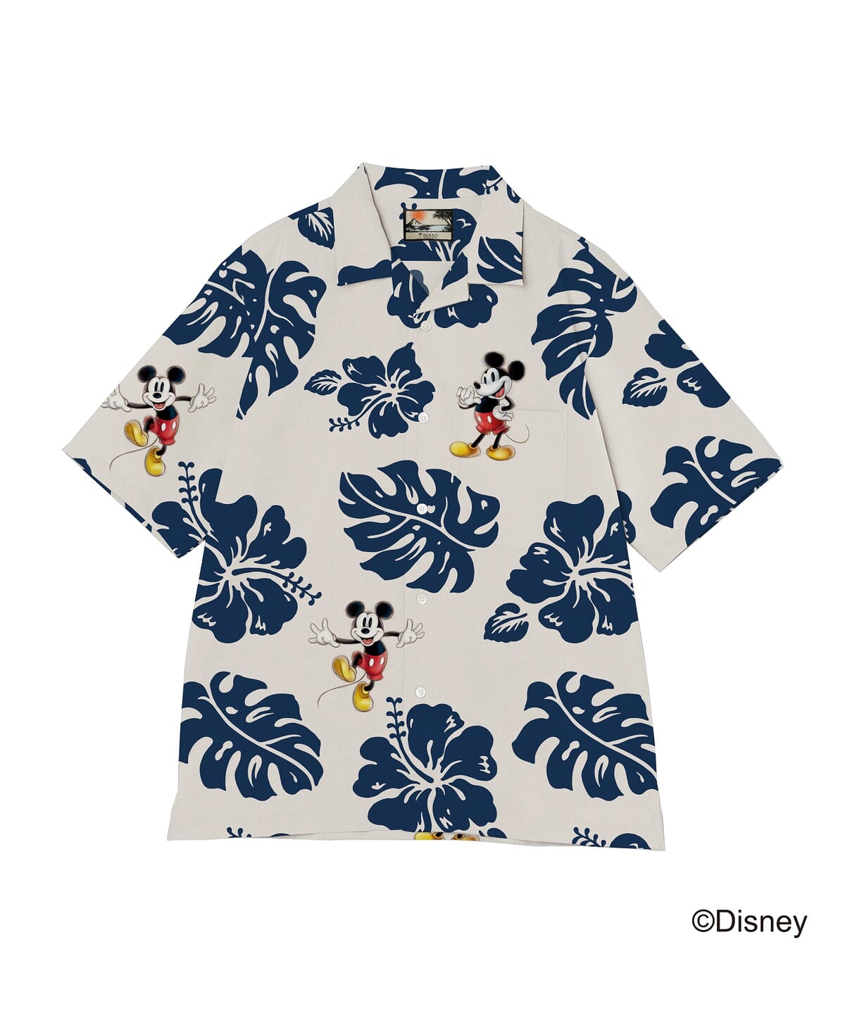 オフホワイトのアロハシャツは、明るく活気のある「ミッキーマウス」のイメージを反映。