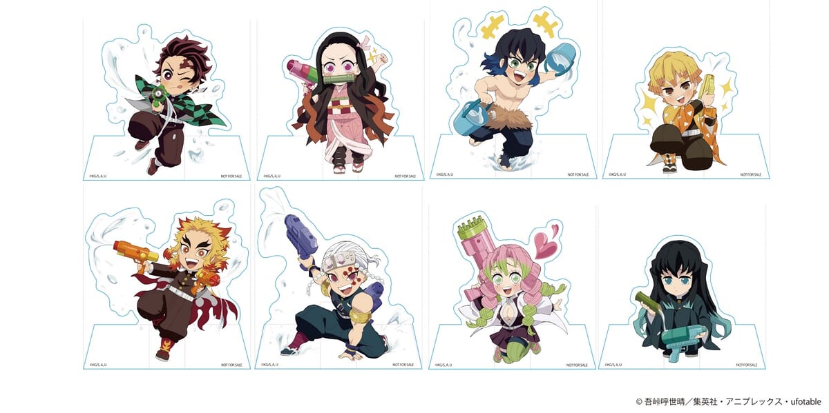 「竈門炭治郎」や柱たちが水鉄砲を持った描き下ろしイラストが登場する、夏らしいイベント。