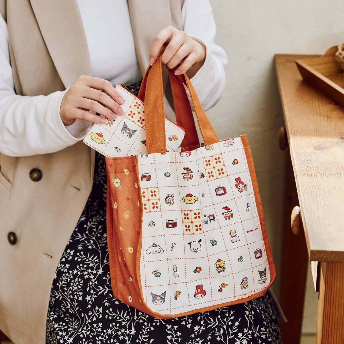 「ミニトートバッグ」と「ポケットティッシュポーチ」は、オレンジを基調にしたデザイン。