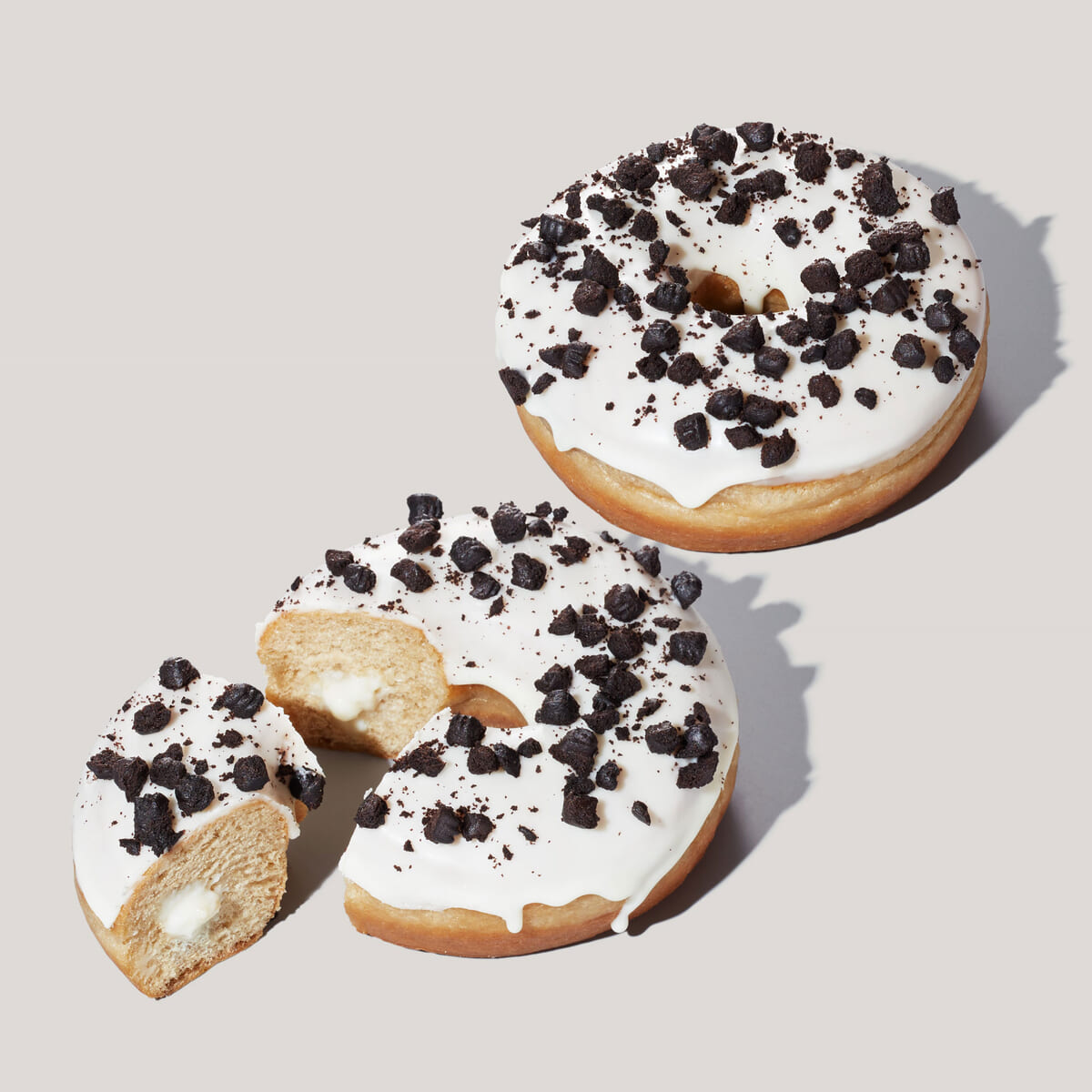 ほろ苦くほのかな塩味のあるブラックココアクッキーと、優しい甘さのバニラクリームのハーモニーが楽しめるドーナツ。
