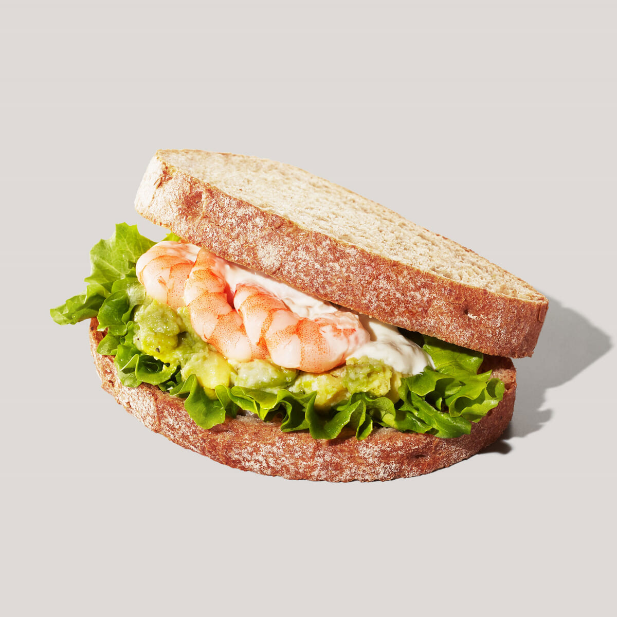 えびのプリプリとした食感とアボカドのクリーミー感が味わえるサンドイッチ。
