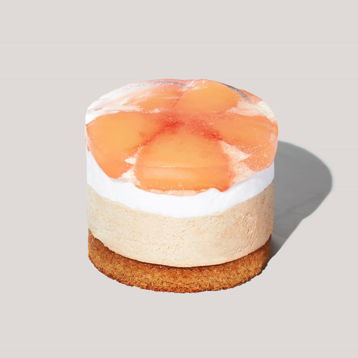 ゴロゴロとした白桃とみずみずしいゼリーが、アールグレイやミルクのムースと相性抜群な夏にぴったりのケーキ。