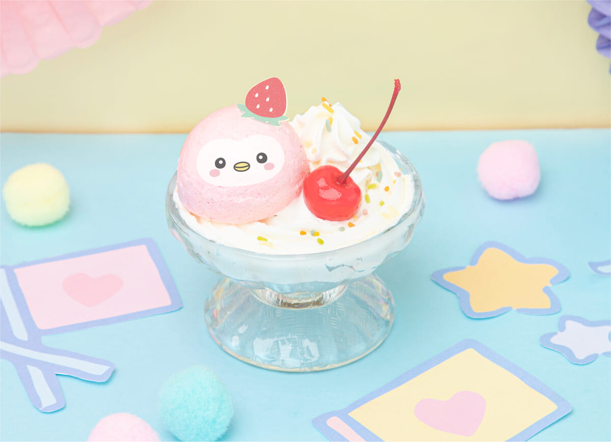 • ぽぽのアイスワッフルボウル:ぽぽの大好きなストロベリー、チョコ、チョコミント味のアイスをフルーツが乗ったワッフルにトッピング!