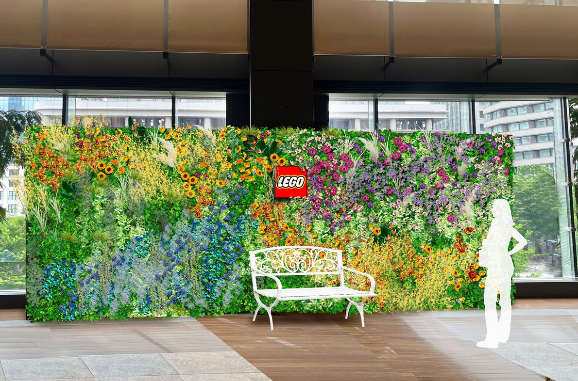 カラフルなレゴ(R)ボタニカルコレクションで新丸ビル3F アトリウムの壁を装飾。