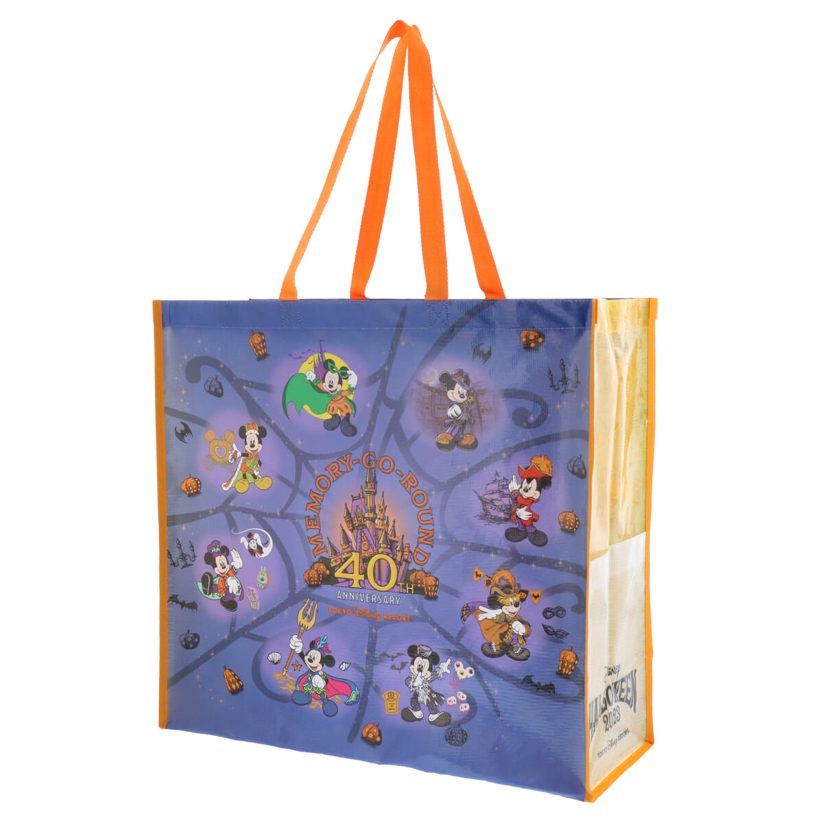 様々なハロウィーンのコスチュームを着たミッキーマウスが描かれたショッピングバッグです。