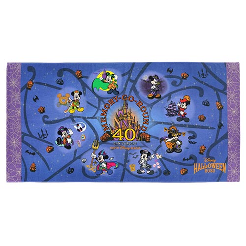 これまでのハロウィーンのコスチュームを着た「ミッキーマウス」が描かれたワイドバスタオルです。