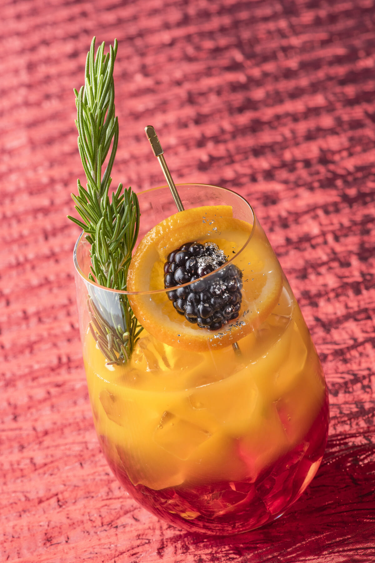 オレンジとブラックベリーでキャンディー を表現した、ハロウィーンらしいドリンクです。