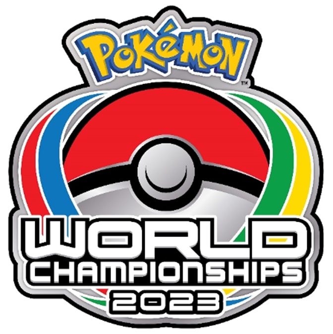 ニャオハ、ホゲータ、クワッスとピカチュウが「ポケモンワールドチャンピオンシップス2023」のロゴと共に描かれたかわいいデザインです。