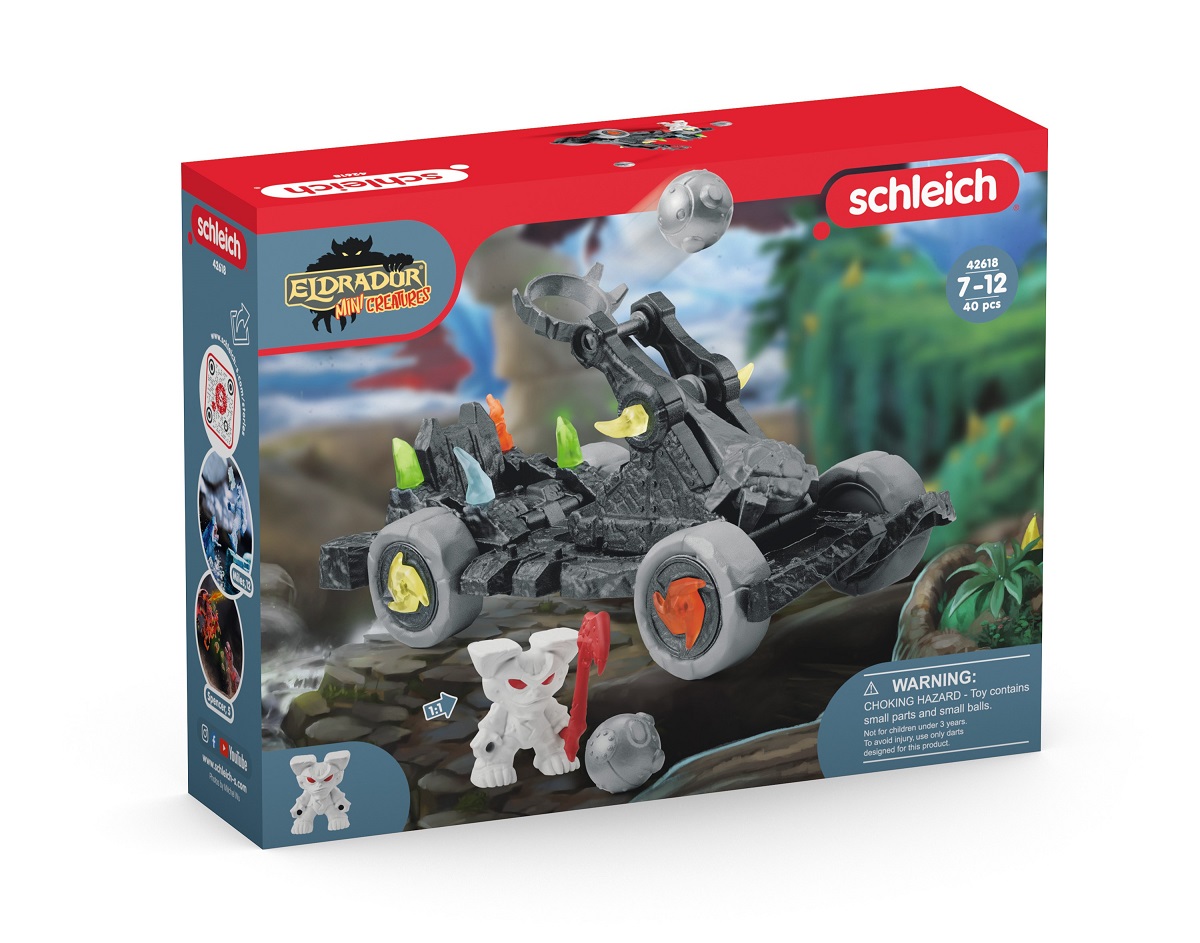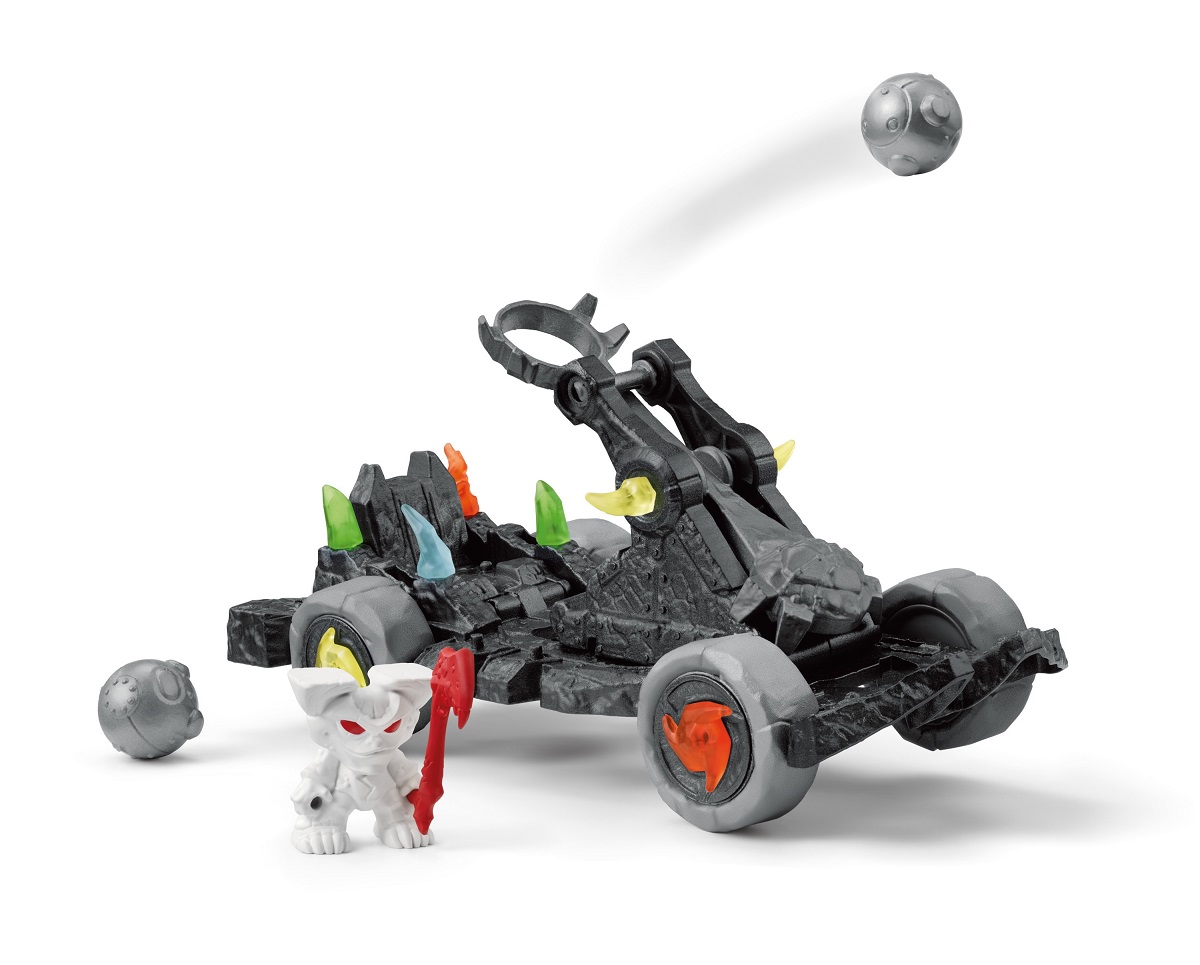 「ミニクリーチャー」が操る投石機「カタパルト」は、実際に石弾のパーツを飛ばして遊べます。